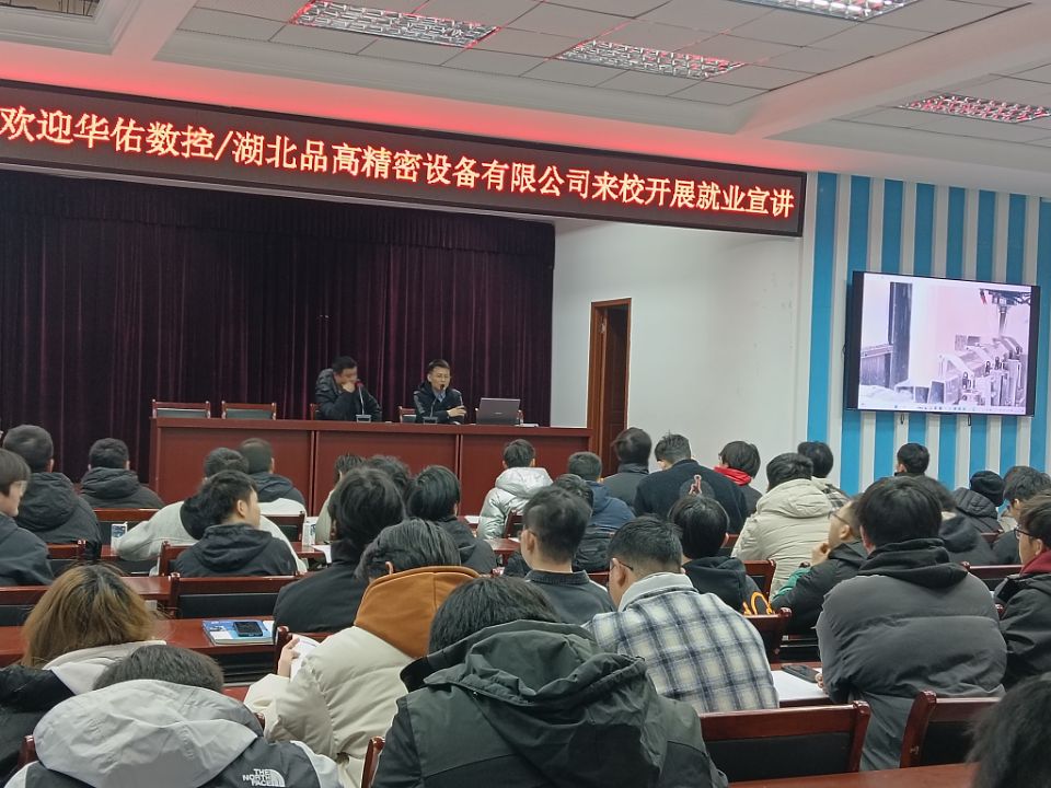 12月24日下午,智能制造(生物化学)系在科技楼报告厅举行2026届毕业生就业实习动员大会,副主任陈宗涛(主持工作)、党总支副书记殷长元、实习指导教师丁岩岩和2026届全体毕业生参会。同时邀请华佑数控(湖北品高精密设备有限公司)李自力总经理莅临我校为毕业生作就业宣讲。
