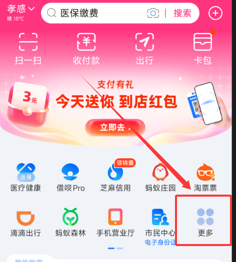 1、打开支付,点击“更多”