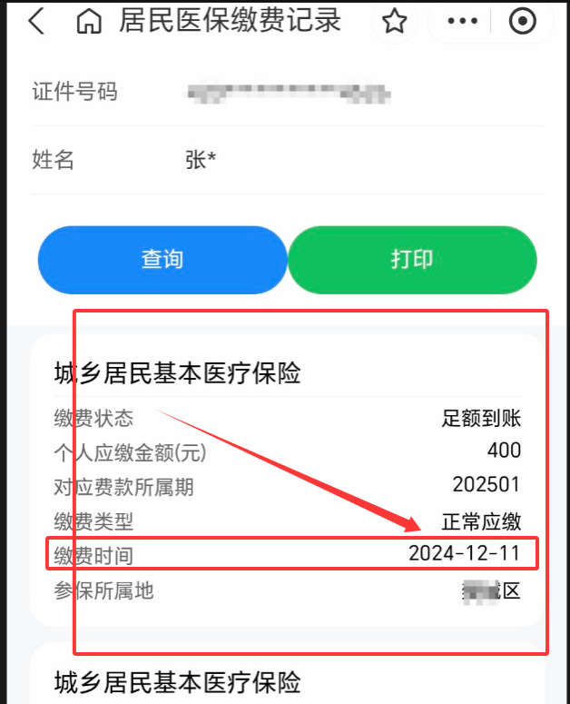 注意:已经成功进行2026年城镇医疗保险参保的同学,缴费时间应显示为“2025年某月某月”!